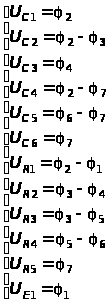в виде системы уравнений, которая получена из матричной формы умножением вектора-столбца узловых потенциалов на матрицу «узел-ветвь» после приведения ее к виду U=-AT :