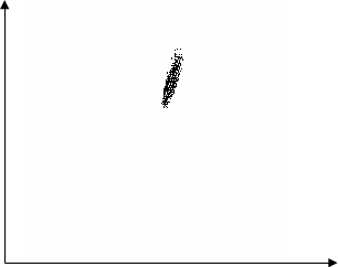 На втором этапе область губ ограничивается эллипсом с помощью статистических методов. Рассматриваются значения оценочной функции в области, найденной на предыдущем этапе. Рассматриваются точки, в которых оценочная функция выше порогового значения. Значение f оценочной функции в точке изображения (xi,yi) интерпретируется как количество попаданий случайных величин X и Y в диапазон ≤ < +1, ≤ < +1 i i i i x X x y Y. Для случайных величин X и Y вычисляются математические ожидания и матрица ковариации. Оси координат совмещаются с направлениями, соответствующими собственным векторам матрицы. Для случайных величин X’ и Y’, соответствующих новой системе координат, считается среднее квадратическое отклонение. Математические ожидания xm,ym, угол поворота α и средние квадратические отклонения dx,dy однозначно определяют эллипс с центром в (xm,ym), повернутый относительно оси на угол α и с радиусами dx и dy.
