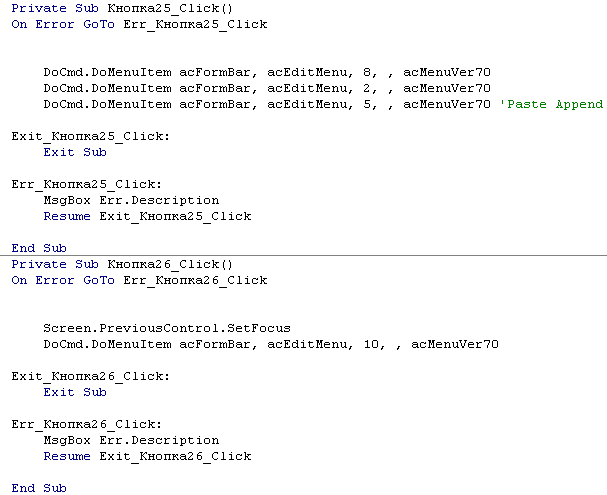 6. Модулі – програми, написані мовою Visual Basic для програм, за допомогою яких можна автоматизувати будь-яку процедуру, що виконується в БД.