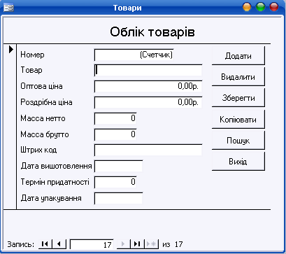 Для пошуку запису натискаємо кнопку “Пошук”, на екрані з’являється наступне вікно (див. рисунок 6.5).