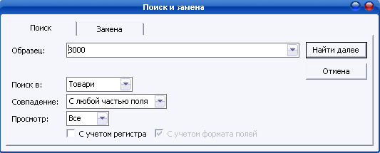 Для заміни обираємо закладку “Замена ” і вікно приймає наступний вигляд (див. рисунок 6.5).