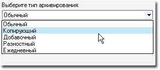 Поскольку у нас пока нечего восстанавливать, выберем режим «Архивация». На следующем шаге необходимо указать объекты, для которых будет выполнена архивация. Мастер предложит на выбор: