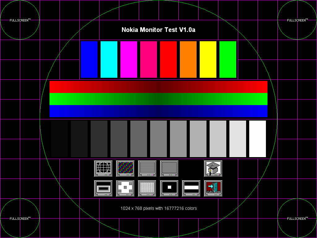 Рис.4. Проверка разрешения экрана. Разрешение экрана можно поменять в панели инструментов или с помощью собственной утилитой из комплекта видеокарты. С помощью теста Resolution можно проверить, насколько хорошо ваш дисплей держит выбранное вами разрешение.