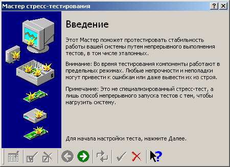 Рис.2. Мастер стресс – тестирования помогает тестировать стабильность работы вашей операционной системы путем выполнения тестов, в том числе эталонных.