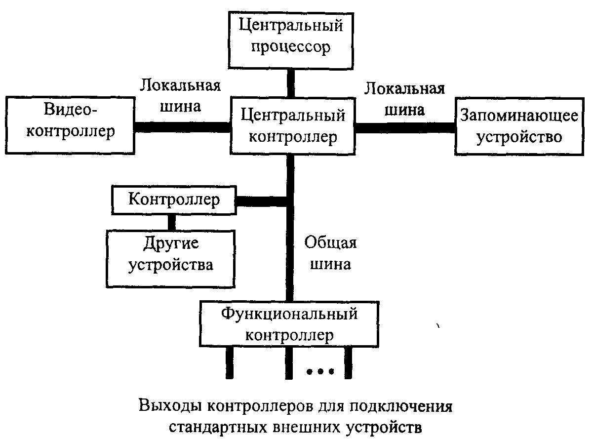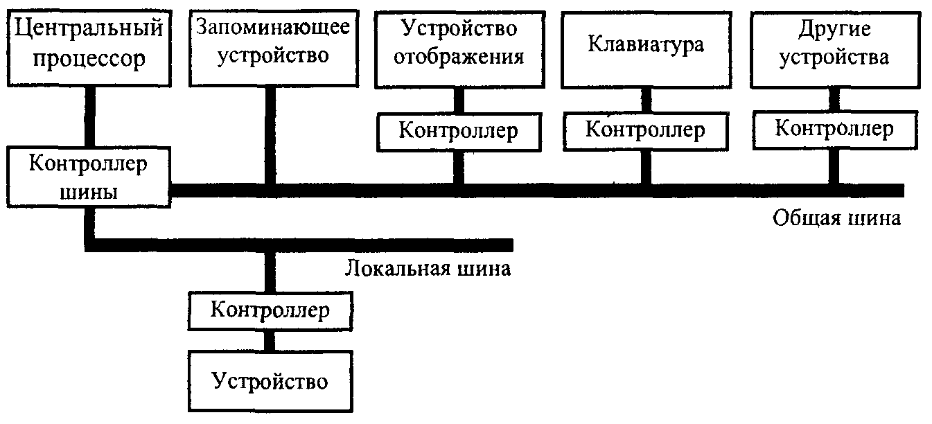 Рис. 3. Архитектура компьютера с общей и локальной шиной