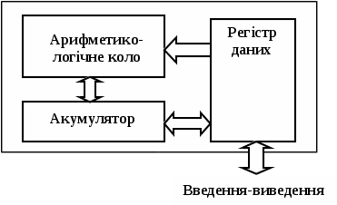 Сутність обробки інформації у цифровій формі полягає у виконанні заданої послідовності найпростіших арифметичних і логічних операцій над числами. У цифровій апаратурі основним пристроєм, у якому безпосередньо виконується обробка, є процесорний пристрій. Процесорний пристрій (як і будь-який інший складний цифровий пристрій) синтезується у вигляді поєднання двох пристроїв: операційного (арифметико-логічного) і керуючого. Структура процесорного пристрою показана на рис. 4.