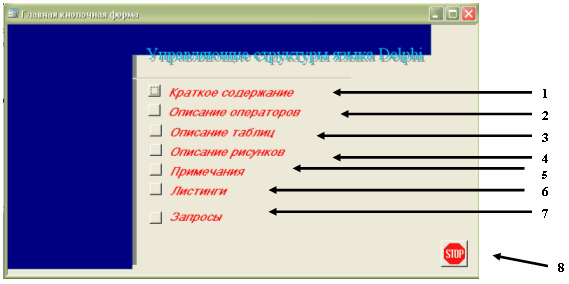 (Літературне джерело: “Культин Н.Б. Основы программирования в Delphi 7. – СПб.: БХВ-Петербург, 2003. – 608 с.: ил”. Розділ: “Глава 2. Управляющие сруктуры языка Delphi”, сторінки: 85–123)»