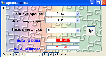 Якщо диск орендовано, тоді записується дата оренди в блокнот чи в електронний редактор.