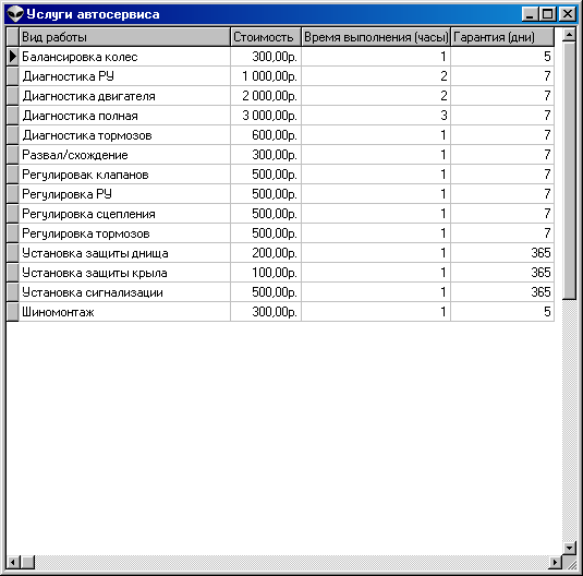 База данных "Автосервис" в среде Borland Delphi 6.0.