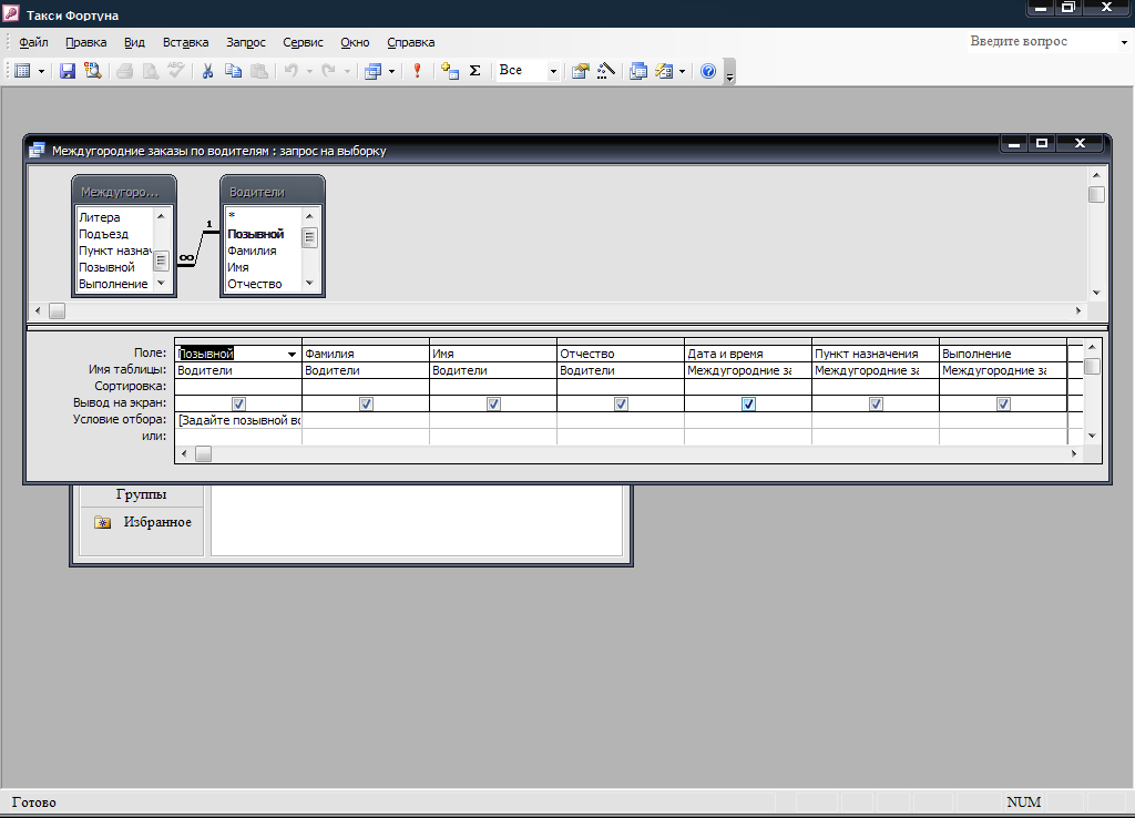 Например, требуется, чтобы на экран выводился список междугородних заказов для конкретного водителя.
