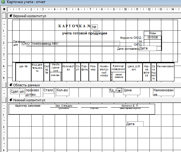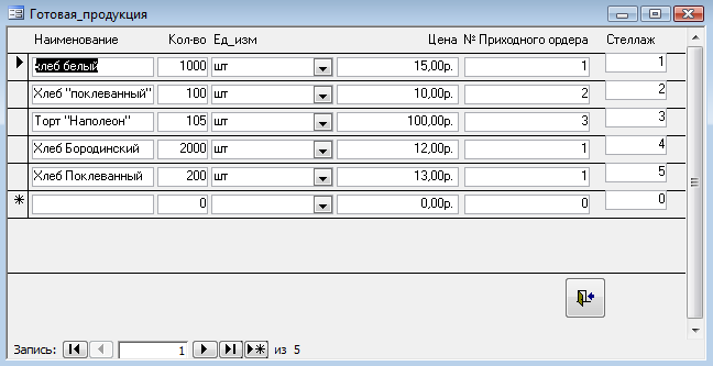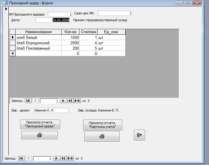 В базе данных используется отчета: «Готовая продукция», «Приходный ордер».