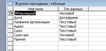 Журнал накладных, в которой хранится информация о приходных ордерах;