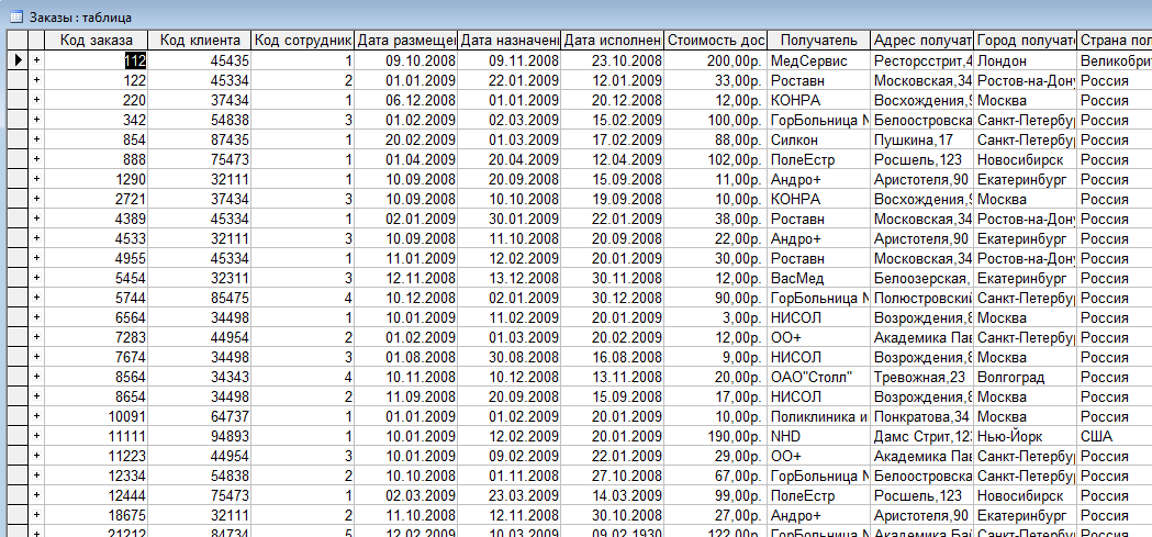 Рис.7. Таблица "Заказы"