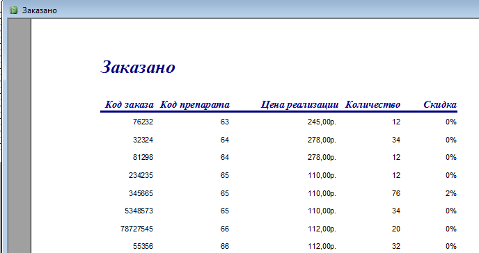 Рис.8. Таблица "Заказано"