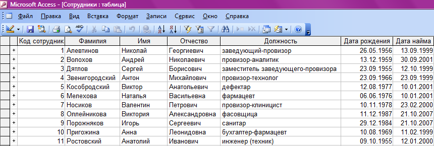 Рис.4. Таблица "Сотрудники"