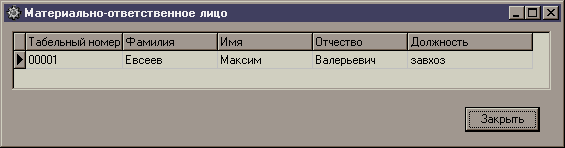При нажатии кнопки «МОЛ» выводится таблица с соответствующими данному складу материально-ответственных лиц.
