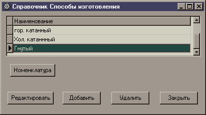 В справочнике «Способ изготовления» мы имеем таблицу с полями, содержащими информацию о различных единицах измерения.