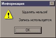 Если же запись используется в каком – либо другом справочнике, то удаление невозможно. Такой выход мы посчитали наиболее разумным, так как останется ссылка на пустую позицию. В таком случае выводится предупреждение.