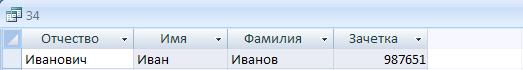 Запрос№34. Используя, таблицу Студенты, определить фамилию, имя и номер зачетки студента, если известно, что его отчество Иванович. Для выполнения этого задания необходимо составить соответствующий запрос.