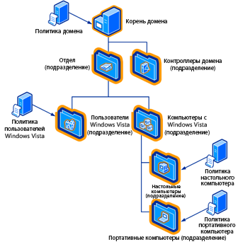 Среда Enterprise Client (EC), описываемая в этой главе, включает домен со службой каталогов Active Directory®, в котором компьютеры с Microsoft® Windows Server® 2003 R2 или Windows Server 2003 с пакетом обновления 1 (SP1) и Active Directory управляют клиентскими компьютерами с Windows Vista или Windows XP®. В такой среде управление клиентскими компьютерами осуществляется с помощью групповой политики, которая применяется к сайтам, доменам и подразделениям. Групповая политика обеспечивает централизованную инфраструктуру на базе Active Directory, которая позволяет выполнять изменения на уровне доменов и управлять конфигурацией пользователей и параметрами компьютеров, включая параметры безопасности и данные пользователей.