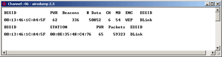 Информационное окно утилиты airodump |