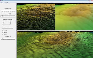 З допомогою наближення, у вікні №1, ми можемо побачити сітку згенерованого зображення. У вікні №2 ми можемо побачити об’ємне зображення нашої фотографії без тіней. Найбільш реалістичне зображення ми отримуємо у вікні №3, де на згренероване зображення накладається тінь. Чим більш гостріший кут огляду деякої поверхні, тим більша тінь на даній області відображення.