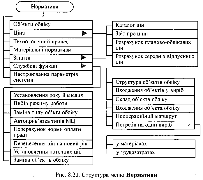 Рис. 4.Структура меню Нормативи