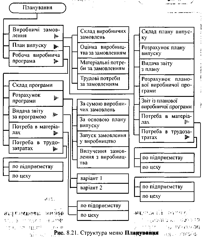 Структуру пункту меню Планування показано на рис. 5.