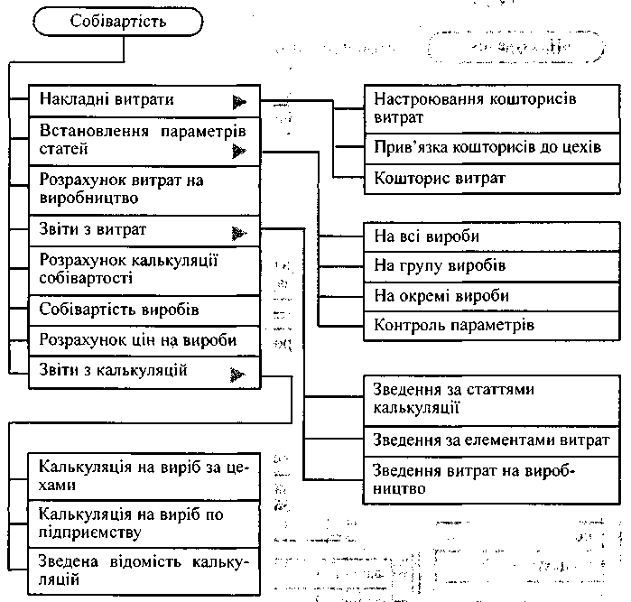 Рис. 6. Структура меню Собівартість