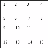 Массив номеров фишек,элемент массива принимает случайное значение от 1 до 16