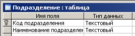 Рисунок 5. Таблица «Подразделение»