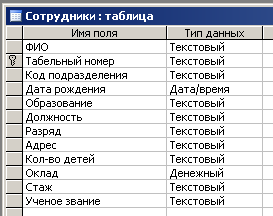 Рисунок 4. Таблица «Сотрудники»