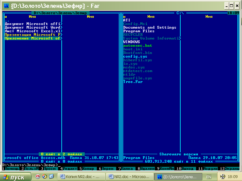 4. Выполнение задания с помощью «Проводника» и командного процессора «FAR»
