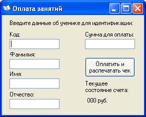 Таблица 3.1. Сценарий варианта использования "Оплата занятий".