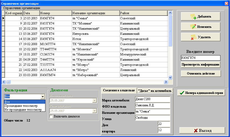 Перечень и общее число организаций, которым выделены номера либо с указанной серией, либо за указанный период;