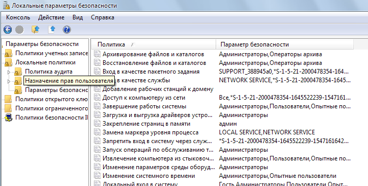 1.Системный администратор на своем сервере открывает средство локальной политики безопасности.