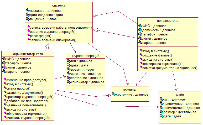 В третьей части курсовой сформированы требования к составу выполняемых функций, организации входных и выходных данных и включает: диаграмму последовательности действий, диаграмму состояний объекта «пользователь», диаграмму деятельности, диаграмму внедрения. Проектный раздел содержит проектные предложения о путях и методах решения сформулированной в начале проекта задачи. Проектная часть описывает процедуру разработки проекта и включает: диаграмму классов, схему и описание информационной базы данных, прототипы экранных форм (пользовательский интерфейс). Пятая часть работы содержит оценку трудоемкости проекта. Сделан вывод, что для разработки системы «безопасность» при условии, что команда разработчиков состоит из трех человек, и добавлено 3 недели на различные непредвиденные ситуации, требуется 23 недели на весь проект. В результате всех проведенных действий был разработан проект информационной системы управления безопасностью под названием «безопасность». В ходе выполнения курсовой работы сделаны выводы, что внедрение информационных систем может способствовать: