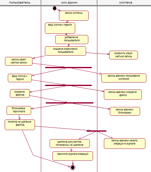 На первом этапе выполнения курсовой работы ознакомлены с задачами и обязанностями, выполняемыми для обеспечения безопасности. На основании этого во второй части работы была разработана спецификация требований к информационной системе «безопасность». В курсовом проекте для сбора требований использовались методики от Rational Unified Process (RUP). Для разработки функциональных требований RUP – модель вариантов использования (ВИ), которая состоит из диаграммы ВИ и подробно описанных потоков событий (сценариев) для каждого ВИ. Также была освоена работа в Rational RequisitePro и построены матрица функциональных, нефункциональных требований, матрица трассировки и матрица вариантов использования. Так же работа включает глоссарий – устанавливает общую терминологию для всех моделей и описаний требований к системе.