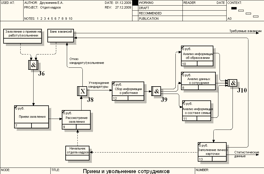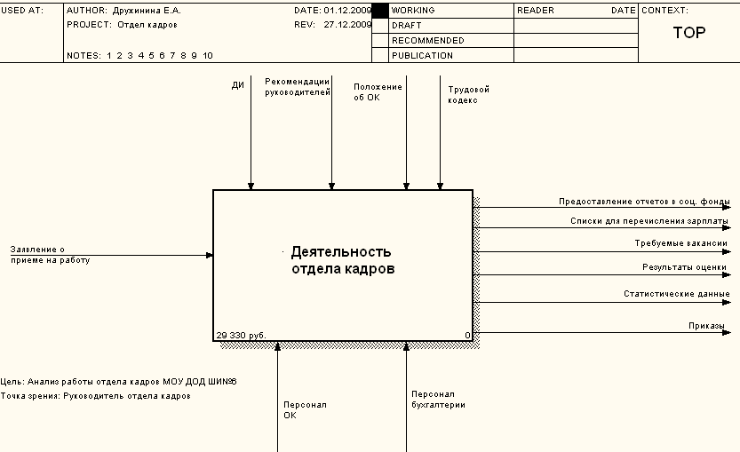 На основе анализа учета кадров в МОУ ДОД «Детская школа искусств №6» построена функциональная модель, описывающая существующую организацию работы. Модель включает: