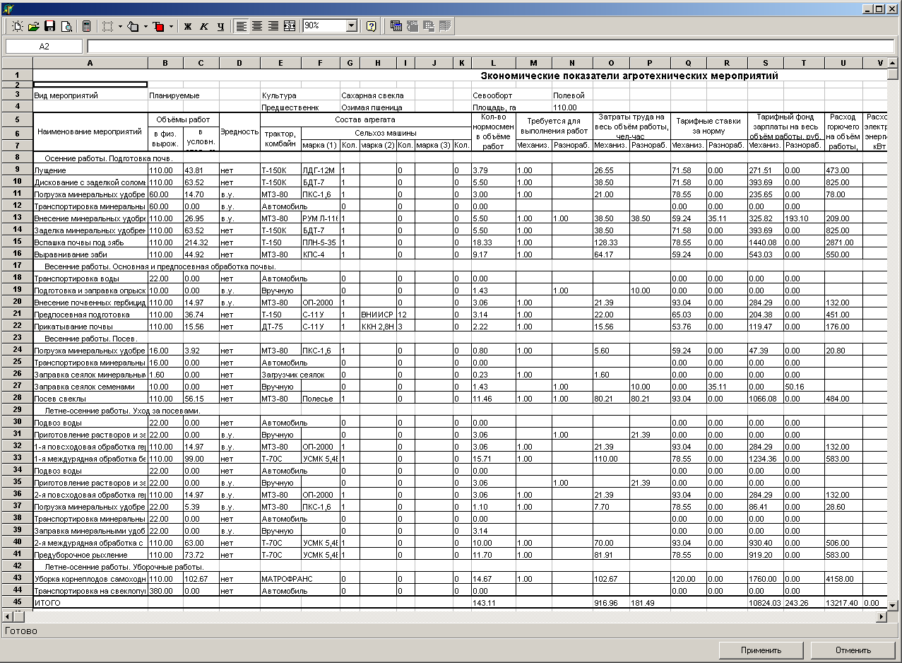 В результате имеется возможность на каждом этапе выращивания культуры проанализировать планируемые и фактические затраты. В случае отклонения программа позволяет выявить причину для принятия соответствующего решения. Таким образом, осуществляя контроль себестоимости продукции.