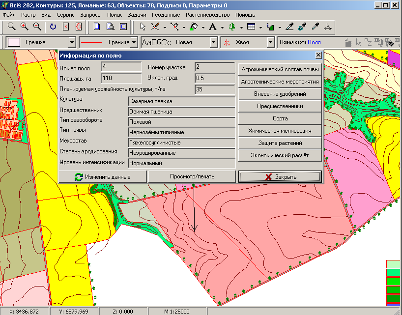 Таким образом, создание автоматизированных программно-алгоритмических систем управления на основе ГИС - технологий даёт возможность провести интенсификацию сельскохозяйственного производства, принимать оптимальные управленческие решения, основанные на пространственном анализе агротехнических, агроэкологических и экономических условий.