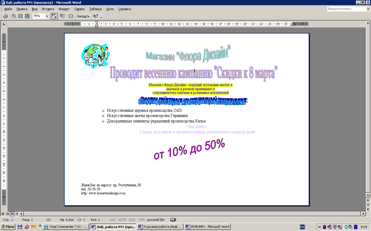Были выполнены задания по составлению Web-страницы, базы данных в Адресной книге и построение, вычисление финансовых функций с помощью MS EXCEL.