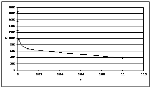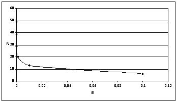 итераций N от заданной точности E,