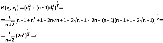 Легко убедиться в том, что если координаты вершин симплекса задать в соответствии с матрицей Д>0 >, то расстояние между двумя любыми вершинами симплекса всегда будет равно выбранной константе t независимо от размерности задачи n .