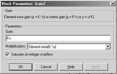 Рис. 4.5. Настройки блока «Коэффициент усиления командного сигнала»