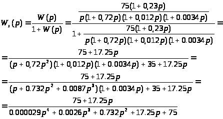 Система замкнутая, значит, запишем передаточную функцию замкнутой системы с последовательным соединением всех звеньев.