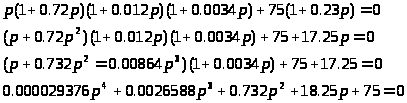 P>1> =-31.952, 148.622; P>2> =-148.622, 31.952; P>3> =-21.42; P>4>=-5.158