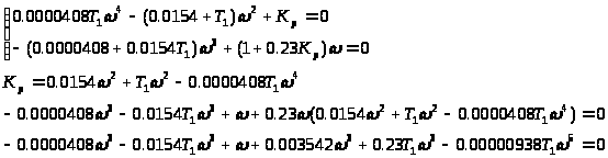 Посторенние области устойчивости с использованием критерия Гурвица затруднено т.к. это система 4 порядка, поэтому применяем критерий Михайлова. Запишем передаточную функцию замкнутой системы где Т>1> и К>р> оставим в буквенной форме.