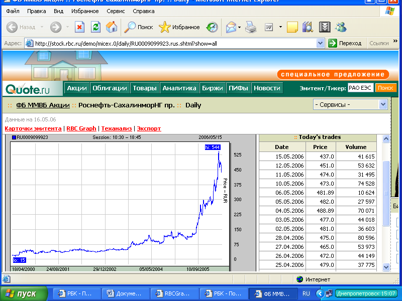 Рис.4. Роснефть-СахалинморНГ пр.; ММВБ