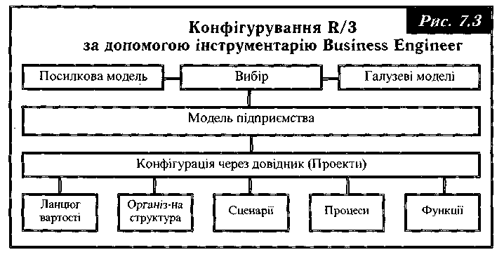 Завдяки відкритому стандартному інтерфейсу користувача Business Engineer партнери R/3 і консультанти можуть створювати попередньо сконфігуровані галузеві рішення на базі господарських сценаріїв R/3 (рис. 5). Крім того, відкриті інтерфейси дають клієнтам R/3 можливість розробляти власні шаблони для впровадження системи R/3.
